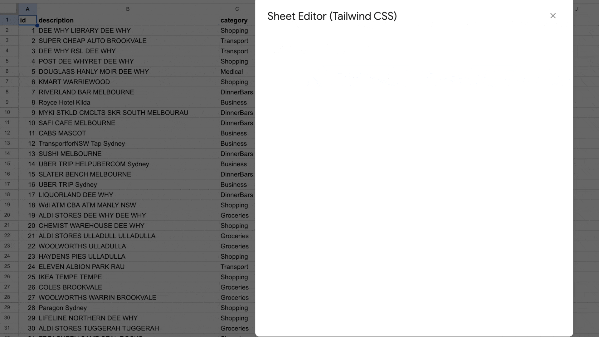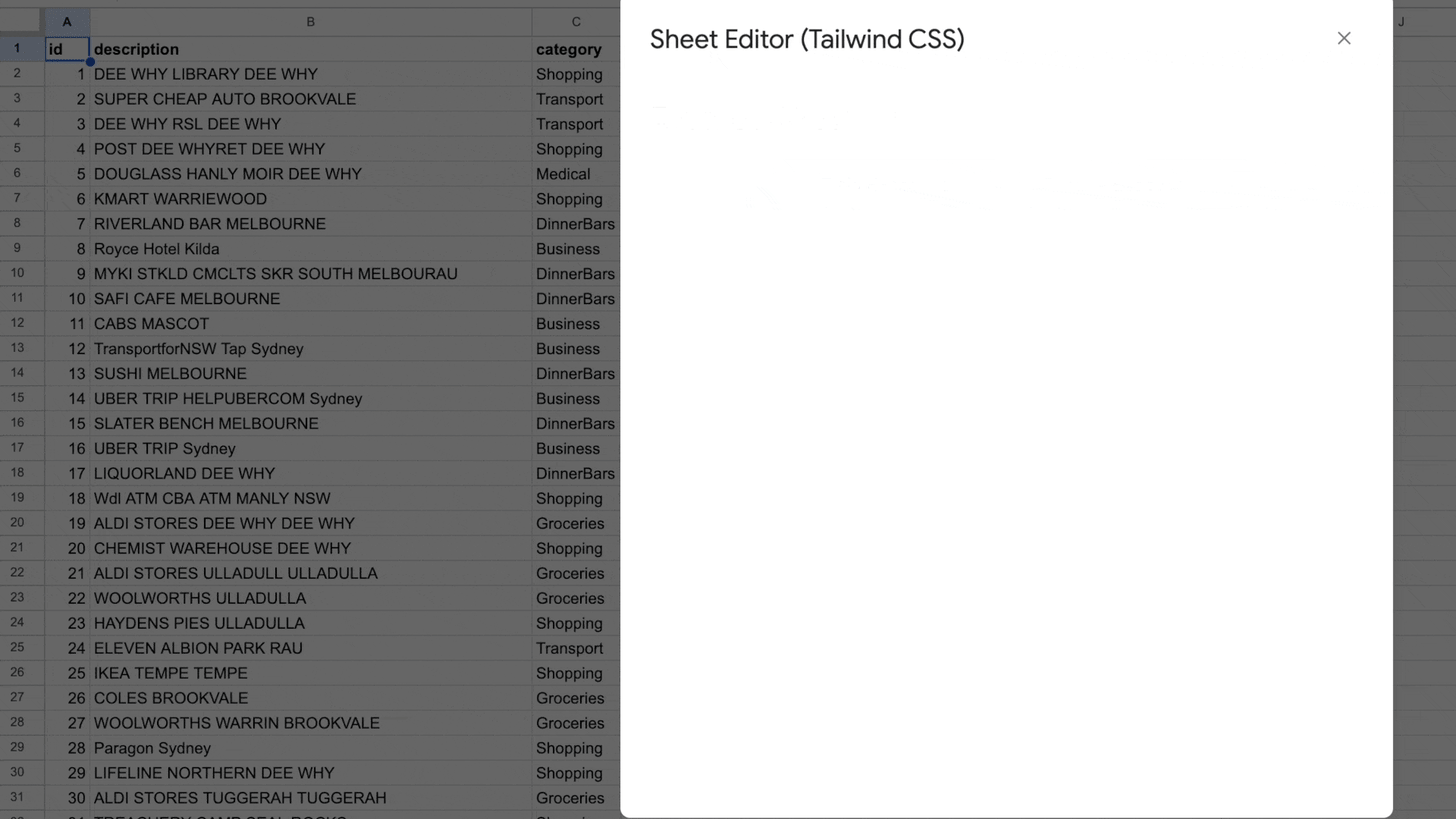 Every month I export a bunch of transactions from credit card/bank accounts and want to know which category they fall into. I’m really happy with my current process. It’s rules-based, meaning that I’ll define something like *Coles* = Groceries i.e. if it finds Coles in the description, it sets the category to groceries.